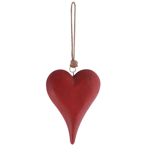 Dřevěné SRDCE na zavěšení v červené barvě s patinou. Srdíčko má rozměr v 10 x š 15 x hl 2,5 cm a zavěšeno na režném provázku. Celková délka včetně provázku je 38 cm.