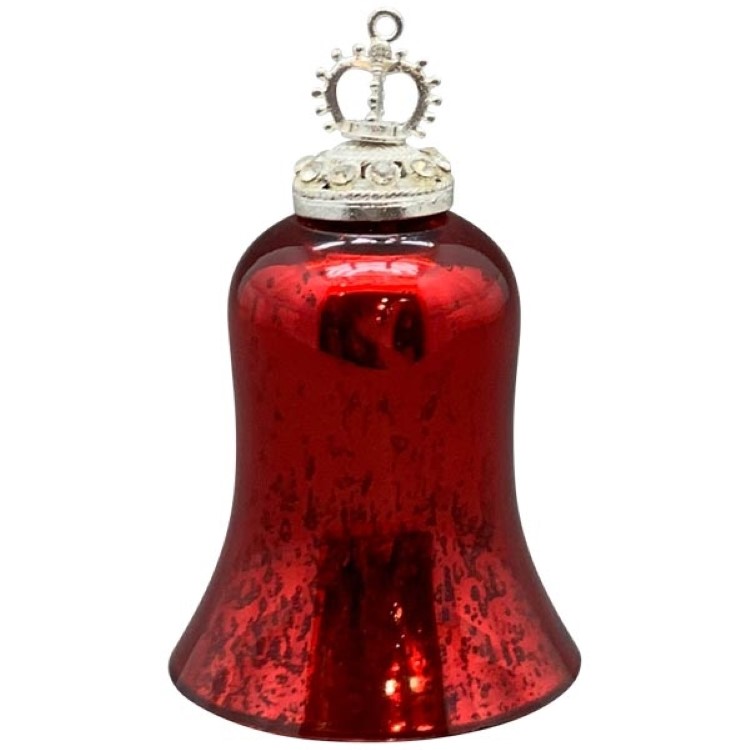 Skleněná báňka Zvoneček Vitreous v červené barvě má rozměr 7,5 x 7,5 x 7,5 cm. Vršek zvonečku včetně kroužku na zavěšení je ve stříbrném kovu a dozdoben perličkami. Krásná dekorace na vánoční stromeček nebo na větvičku z jehličí. Zvoneček je jen dekorační - nezvoní !