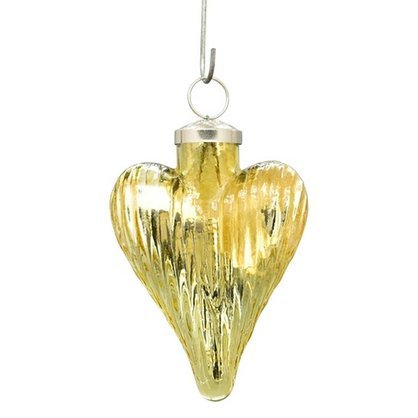 Skleněná báňka Srdce Vitreous ve zlaté barvě má rozměr 10 x 10 cm . Můžete je zavěsit na vánoční stromek, nebo využít jako závěsnou dekoraci např. do okna.